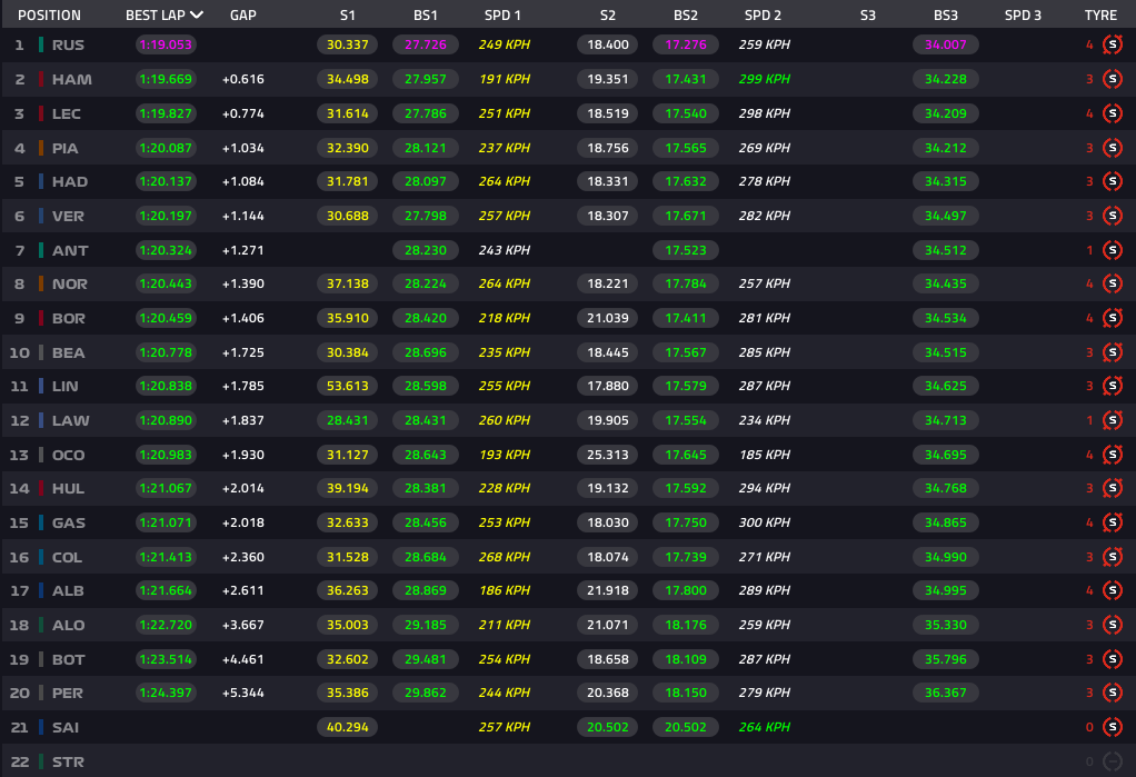残り3分で再開し、Q3最終アタックのような状況、ラッセルがトップタイムになりました。