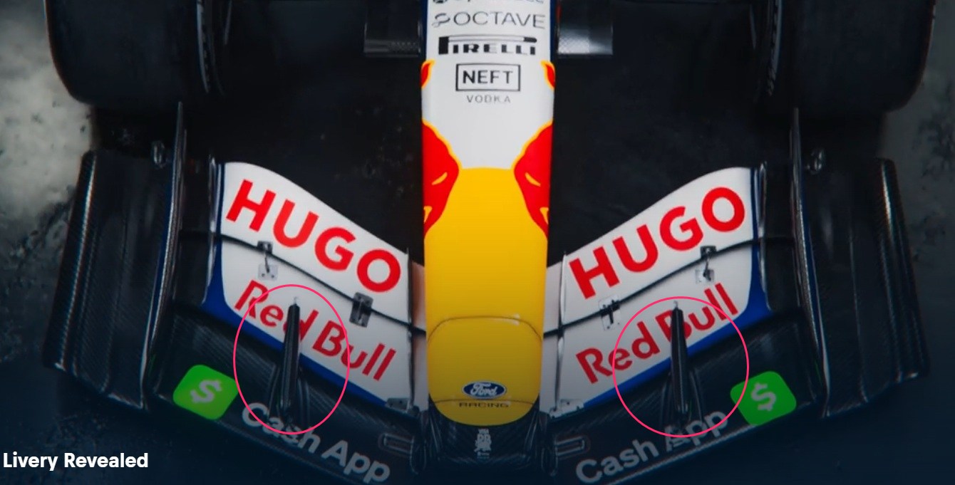 フロントウィングの上に大きなボルテックスジェネレーターがありますね。