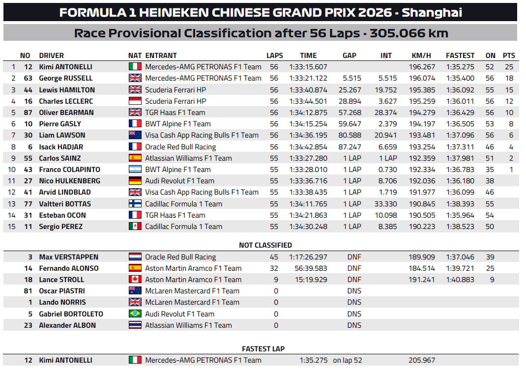2026年F1第2戦中国GPは、キミ・アントネッリがポールトゥウィンで初優勝しました。