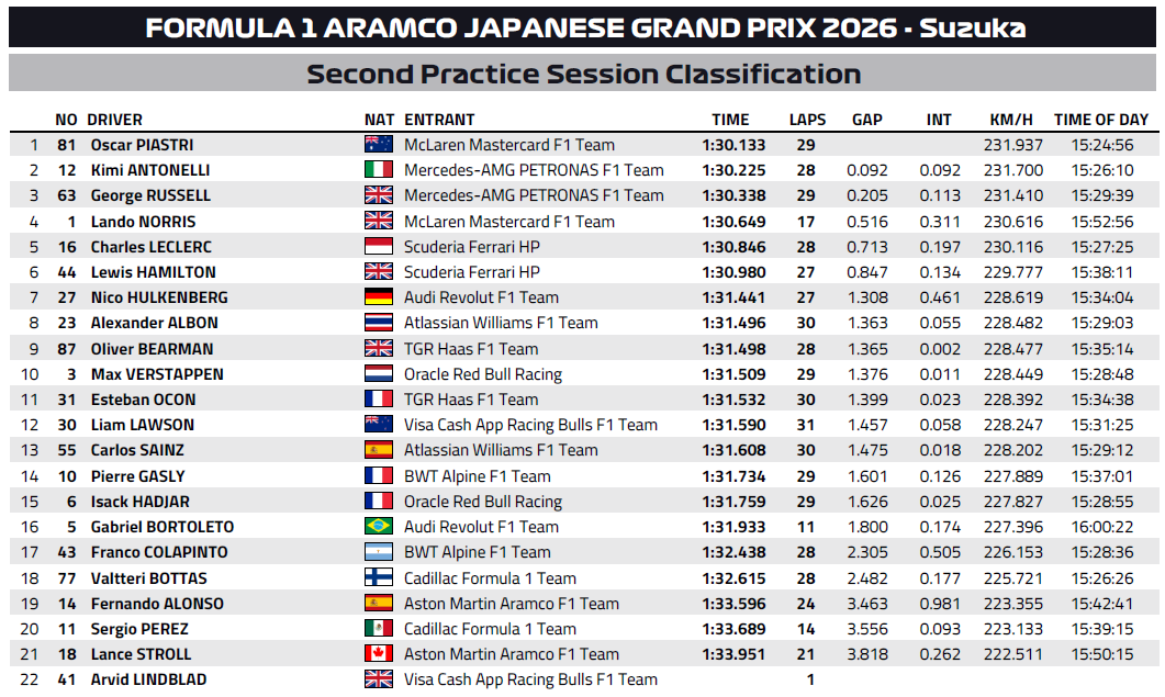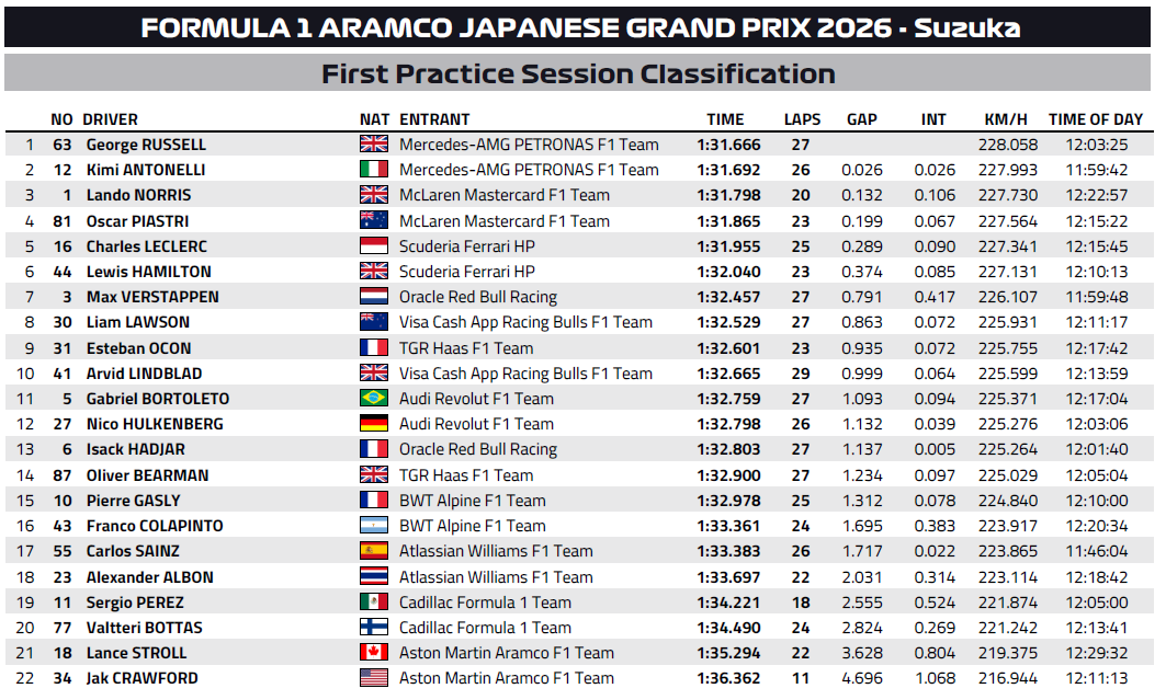 2026年F1第3戦日本グランプリ、金曜日のプラクティス①②が行われました。