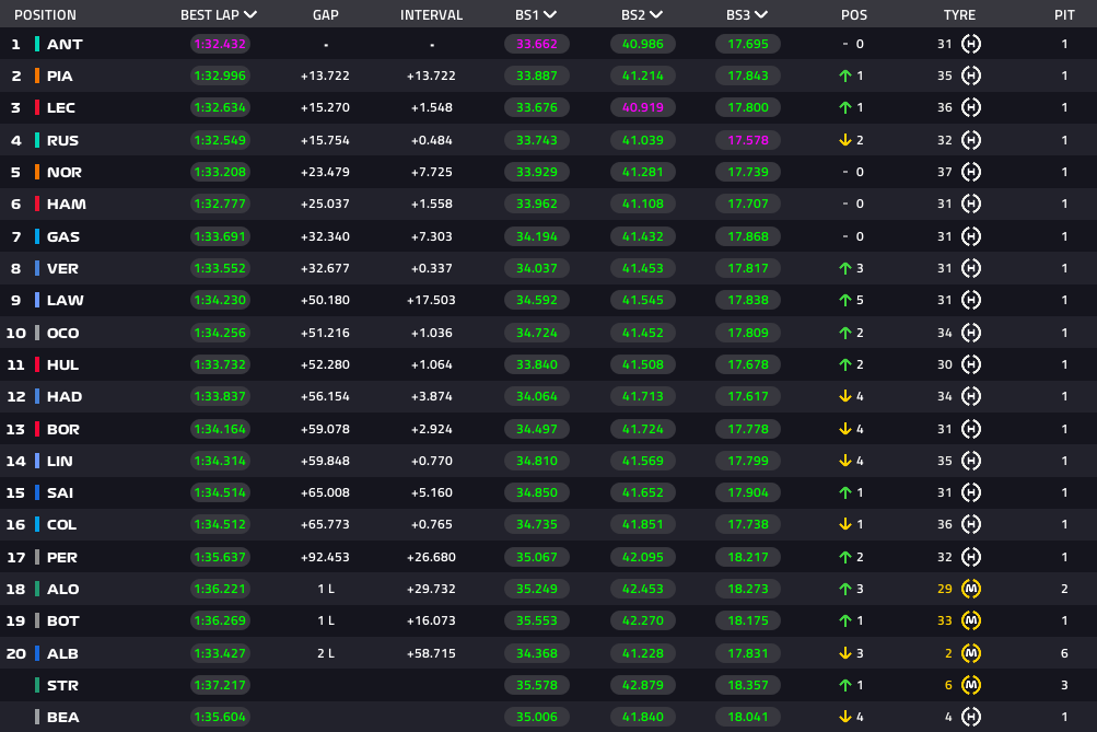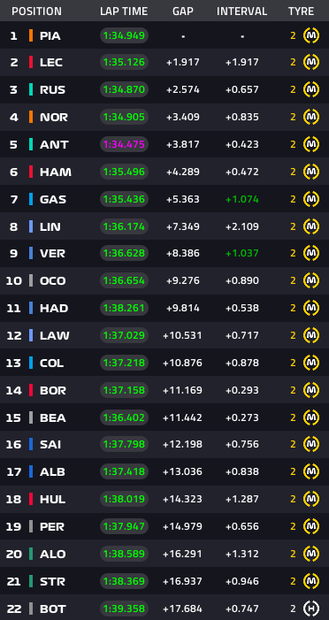 Lap34:アントネッリは快調にトップを走行、ピアストリに4秒差
