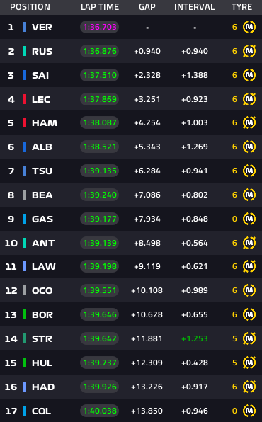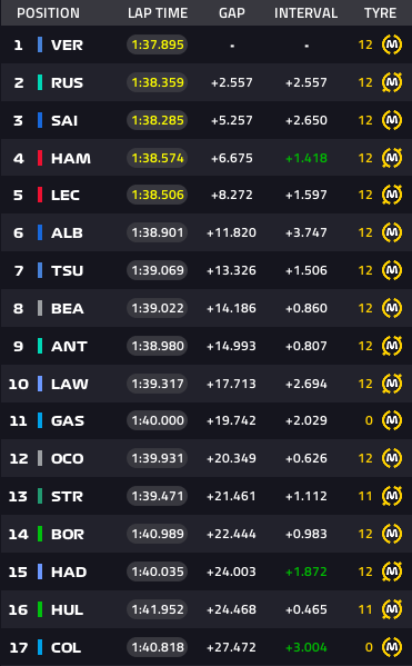 Lap19終了:SCフィニッシュ、フェルスタッペン1位です。