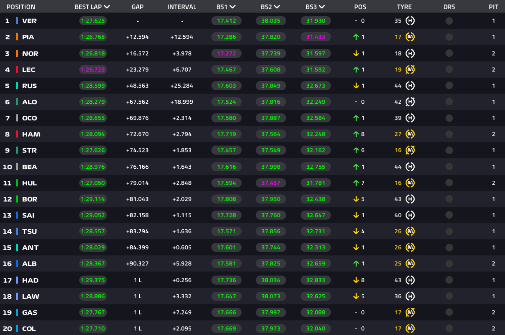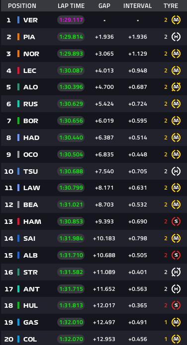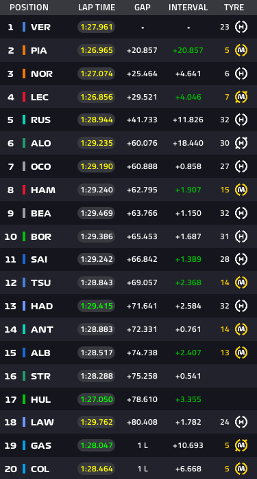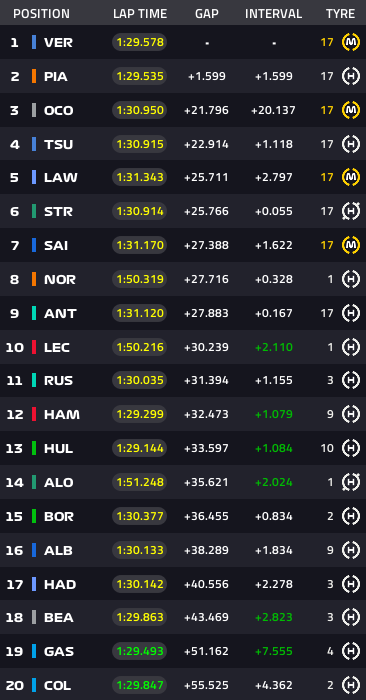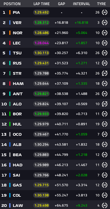 Lap41:ノリスはハードへ3位、フェルスタッペンはピアストリをパスして1位
