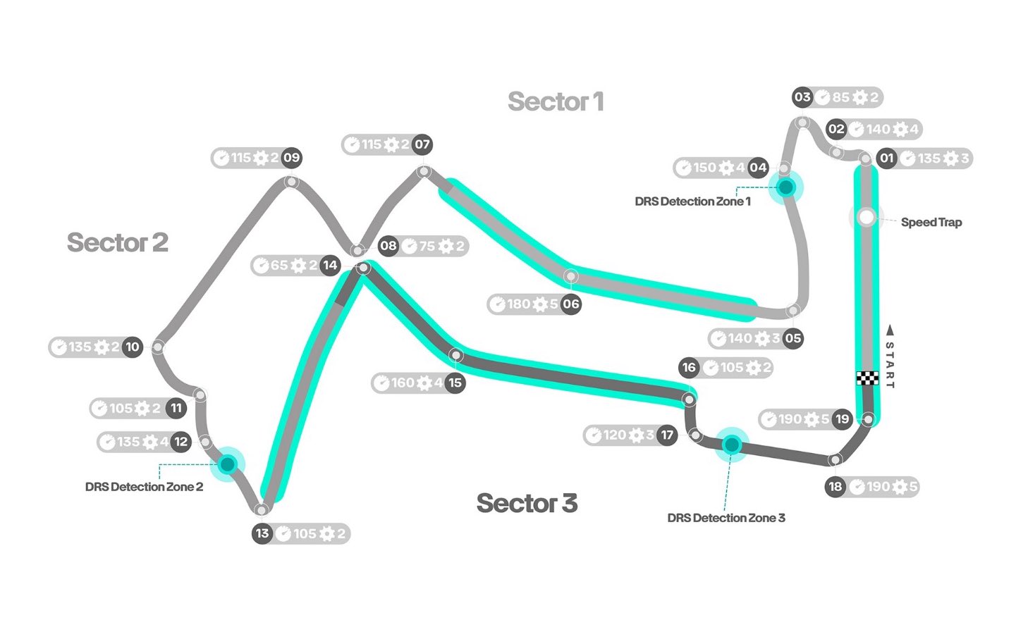 チャンピオン争いの二人が3,5番手、バトルに影響する守りの走りとなればラッセル、フェルスタッペン、アントネッリが有利です。