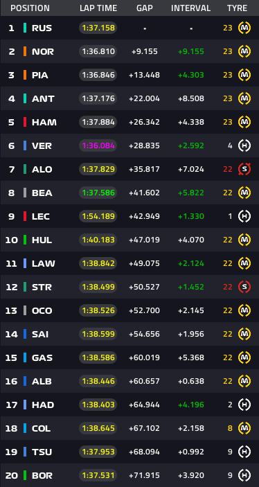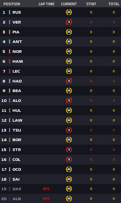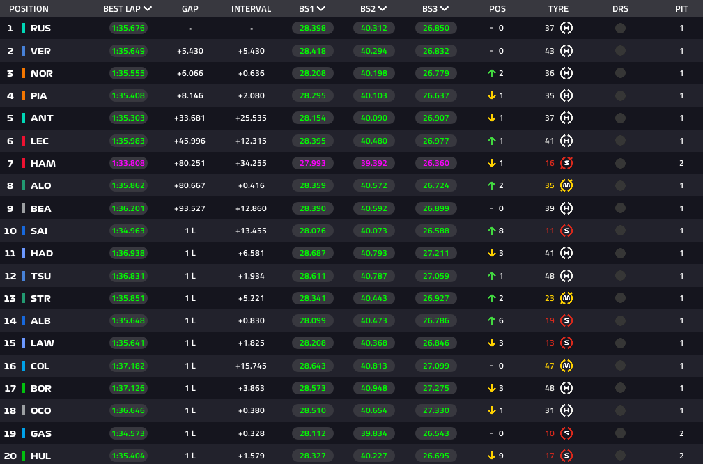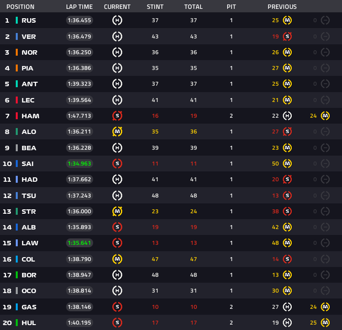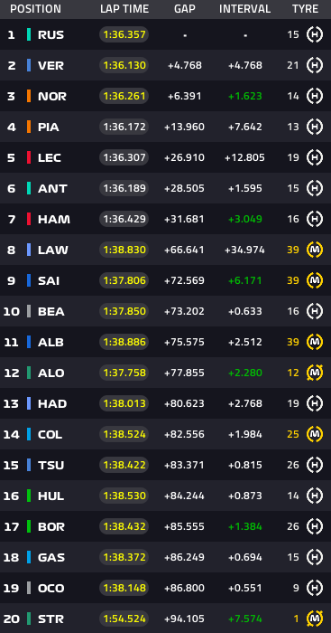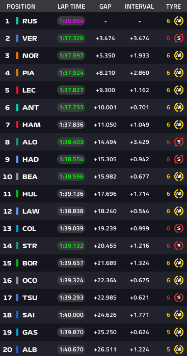 Lap26:ラッセルはハードへ3位、アントネッリはハードへ7位