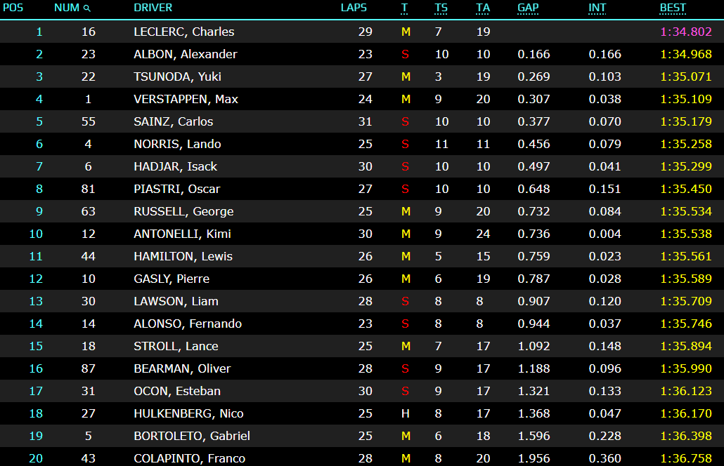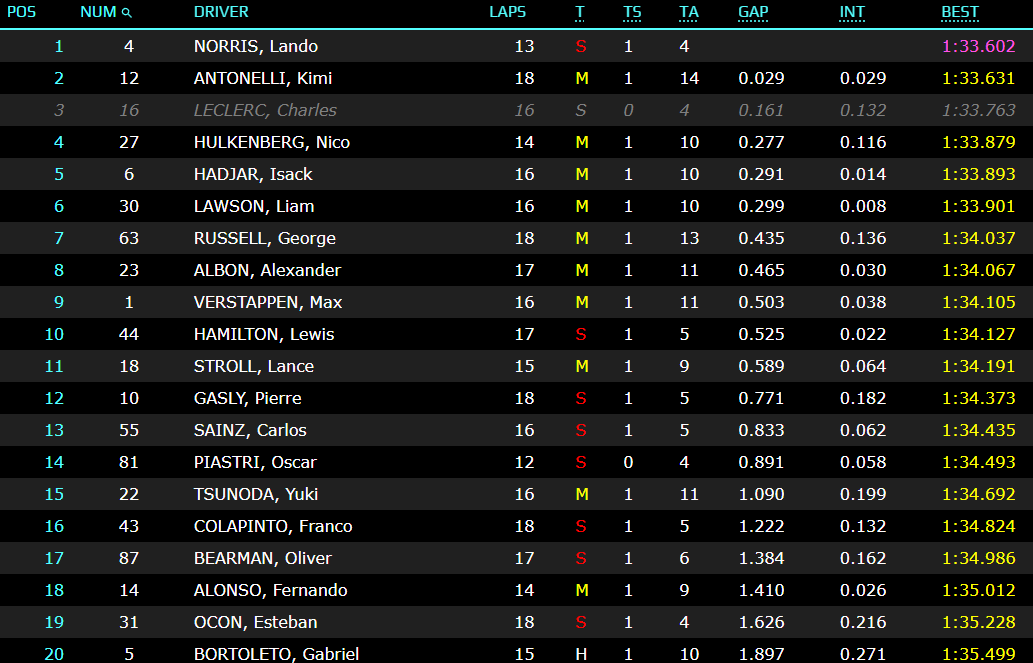 ノリスがトップタイム、思うようにアタック出来なかったドライバーが多数、まだまだ序列はわからない状況になっています。