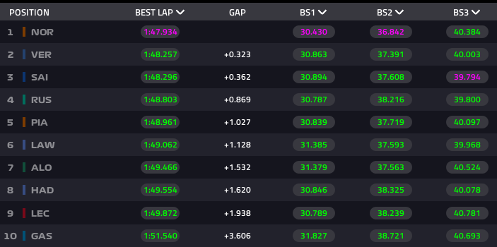 ノリス48.3、ピアストリ48.9、フェルスタッペン49.2